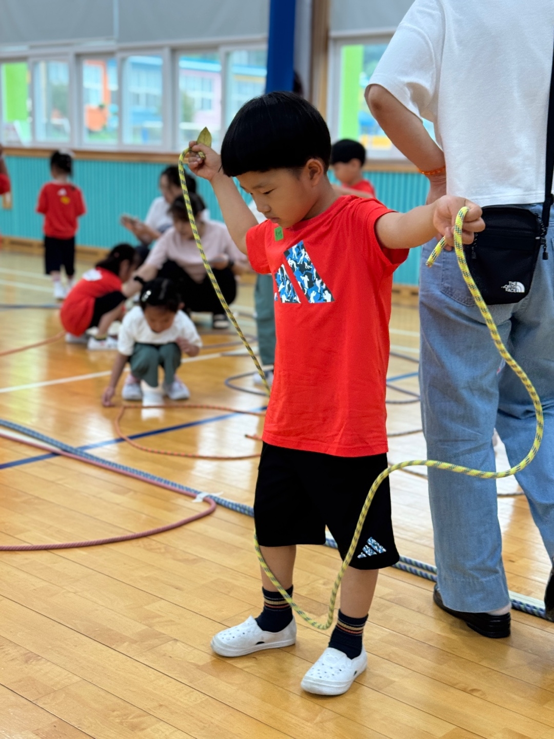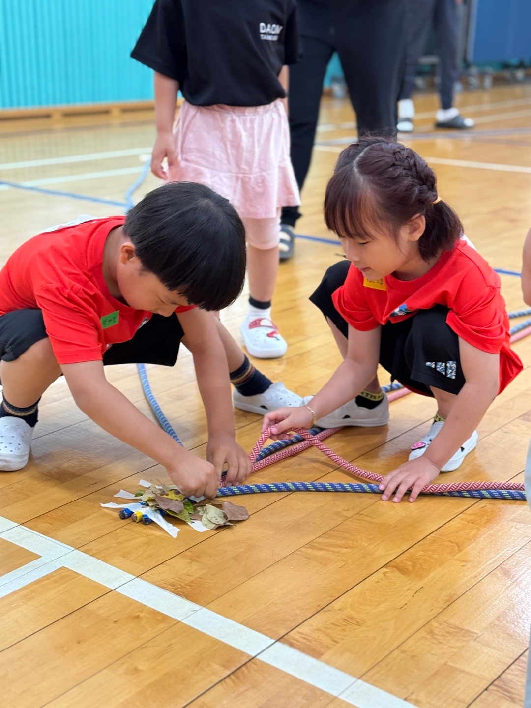 밧줄놀이로 서로 끌어주고 기차놀이도 해 보았습니다.
